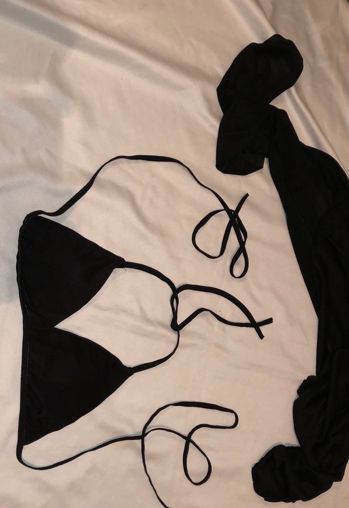 Siyah renkte, ince askılı ve midi uzunlukta avant-garde gotik tarzda sade tasarımlı sütyen.