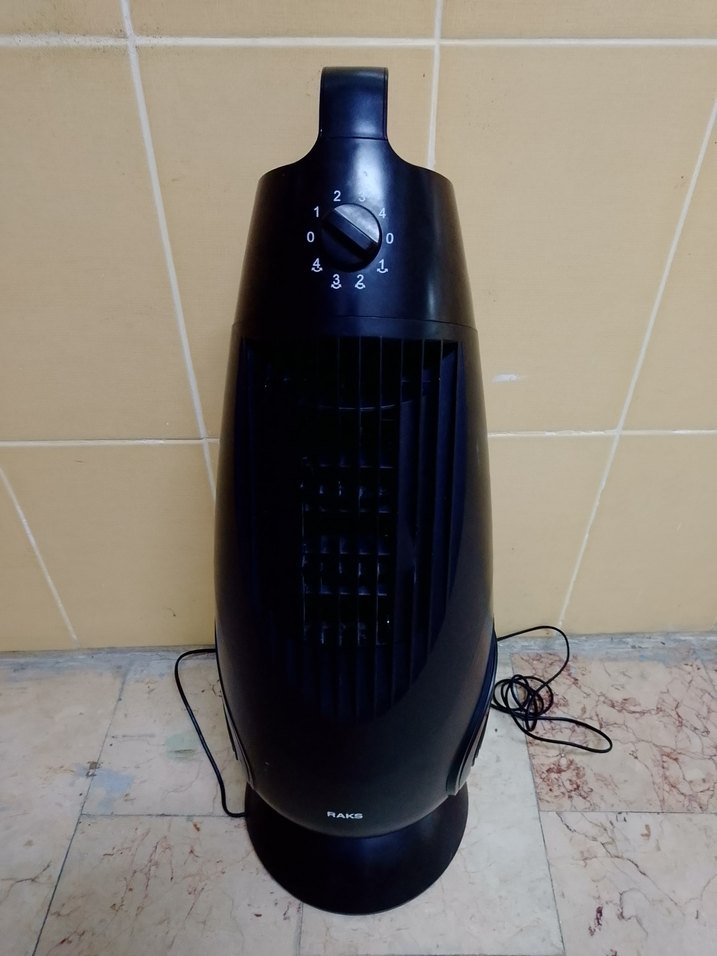 Ayaklı siyah dikey fan, ayarlanabilir hız kademeleri ve kompakt tasarıma sahiptir. sağa sola dönme sorunu var . Kolay kullanım için döner kontrol düğmesi bulunur.