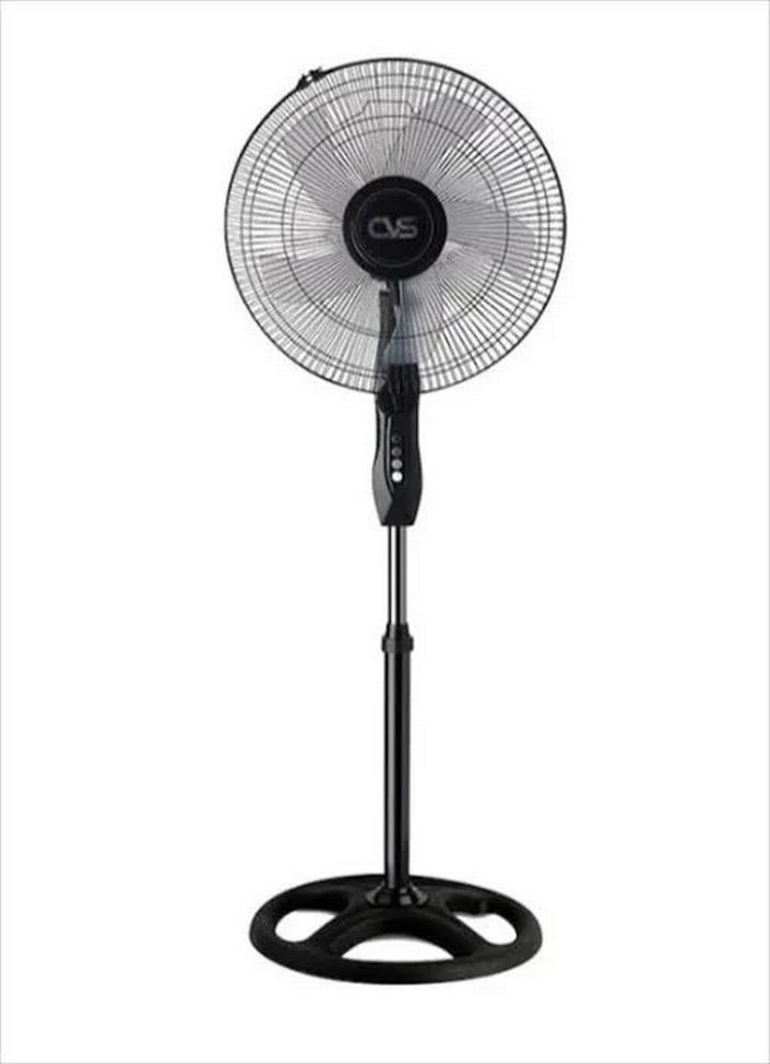 Ayarlanabilir yükseklik ve çoklu hız ayarlarına sahip siyah ayaklı vantilatör, sağlam tabanıyla dengeli durur.