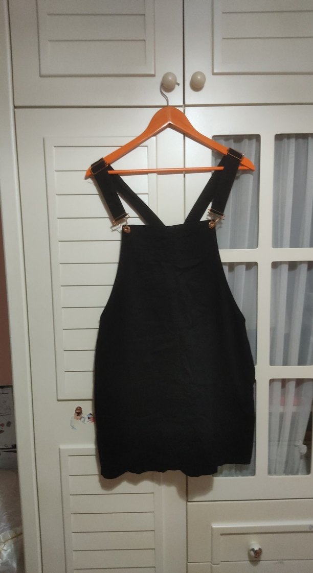 Ayarlanabilir askıları ve desensiz siyah kumaşıyla dayanıklı hamile elbise. Kullanışlı ve sade tasarıma sahiptir.