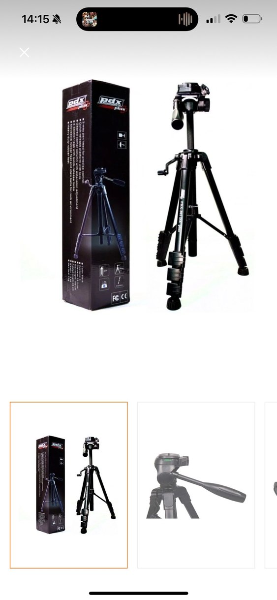 Siyah renkli, ayarlanabilir bacaklara ve sağlam telefon tutucusuna sahip tripod standı, sabit fotoğraf ve video çekimleri için uygundur.