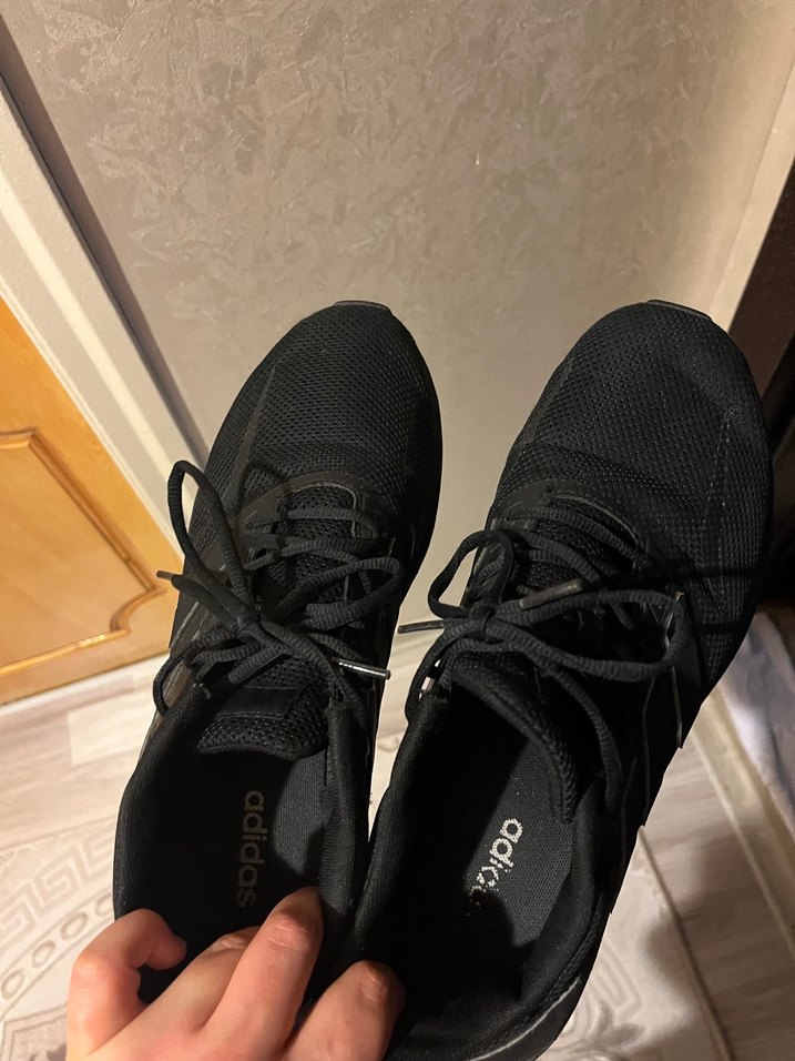 Bağcıklı, siyah Adidas spor ayakkabılar, kauçuk tabanlı ve stiletto topuklu, spor sokak stiline uygun.