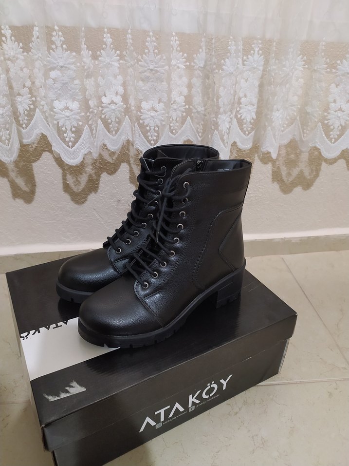 Siyah Bağcıklı Blok Topuk Kadın Bot