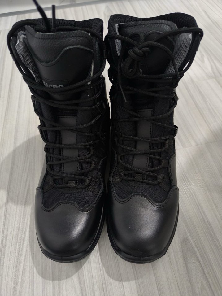 Siyah bağcıklı, kauçuk malzemeden yapılmış erkek biker botları. Günlük kullanım için uygun, şık ve desensiz tasarım.