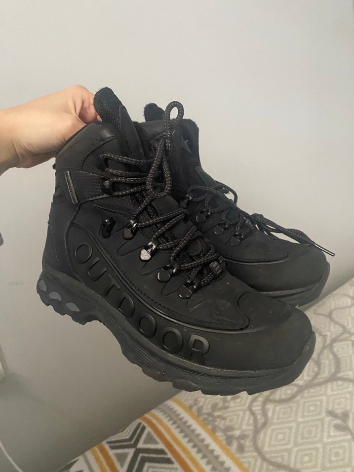 37 numara 2 3 kez kullanıldı temiz kullanıldı bir kusuru yoktur.Siyah, kauçuk malzemeden yapılmış, bağcıklı erkek outdoor botları. Goth ve athleisure tarzında, desen içermeyen koyu renkte tasarlanmıştır.