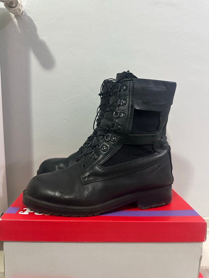Dış mekanda kullanılabilen, bağcıklı siyah erkek botları. Göründüğü gibi sorunsuz