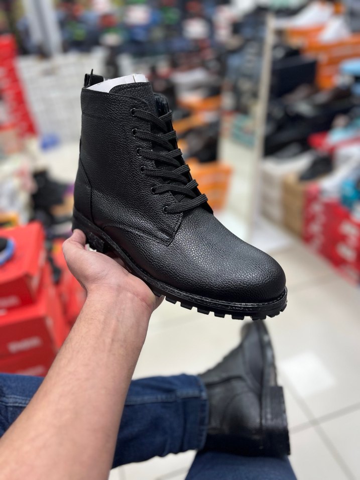 Dayanıklı kauçuk malzemeden, bağcıklı ve yılan deseni dokusuna sahip siyah erkek botu. Sokak stili ve günlük kullanım için uygun. İçi yünlü Kaymaz kauçuk taban Komple enjeksiyonlu ve Petli taban Birinci kalite cilt malzeme Kesinlikle çatlama kırılma iz yapmaz Standart kalıp numarasına uygun