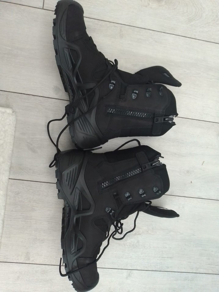 Siyah bağcıklı, fermuarlı ve dayanıklı tabanlı erkek kauçuk botları gotik tarzda, açık hava kullanımı için uygundur.