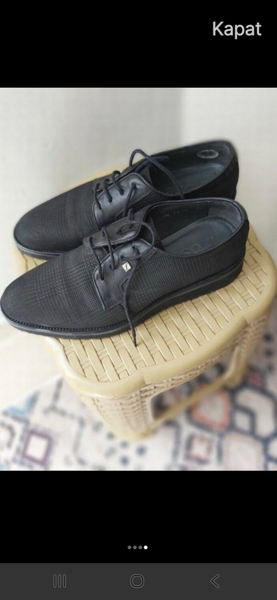 Ofis kullanımı için uygun, kauçuk tabanlı, bağcıklı siyah erkek klasik ayakkabı. Desensiz ve koyu renktedir. sadece mezuniyette giyildi