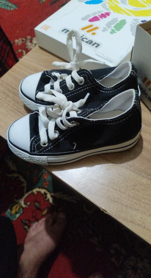 Siyah renkli, beyaz bağcıklı erkek çocuk spor ayakkabısıdır. Lastik tabanlı, sade ve günlük kullanıma uygun bir modeldir.