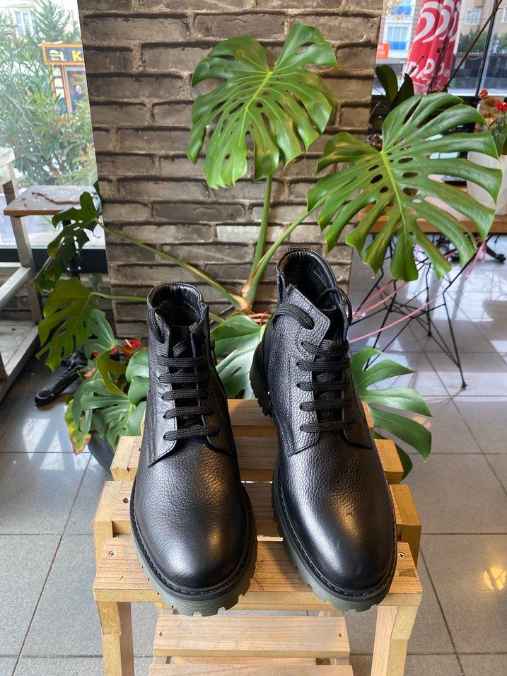 Siyah renkte, deri malzemeden yapılmış, içi kürklü bağcıklı erkek bot. Günlük kullanıma uygun, sokak stiline uygun rahat tasarım. 40-45 numaraları mevcuttur.
