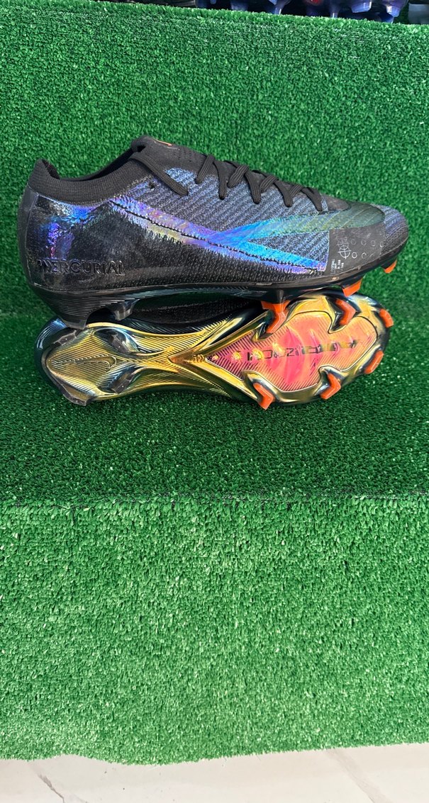 Siyah, bağcıklı erkek futbol ayakkabısı. Koyu tie-dye desenli, kauçuk tabanlı, spor için uygundur,40-41 numaralar mevcuttur şeffaf kargo ile gönderim sağlıyoruz ⚽