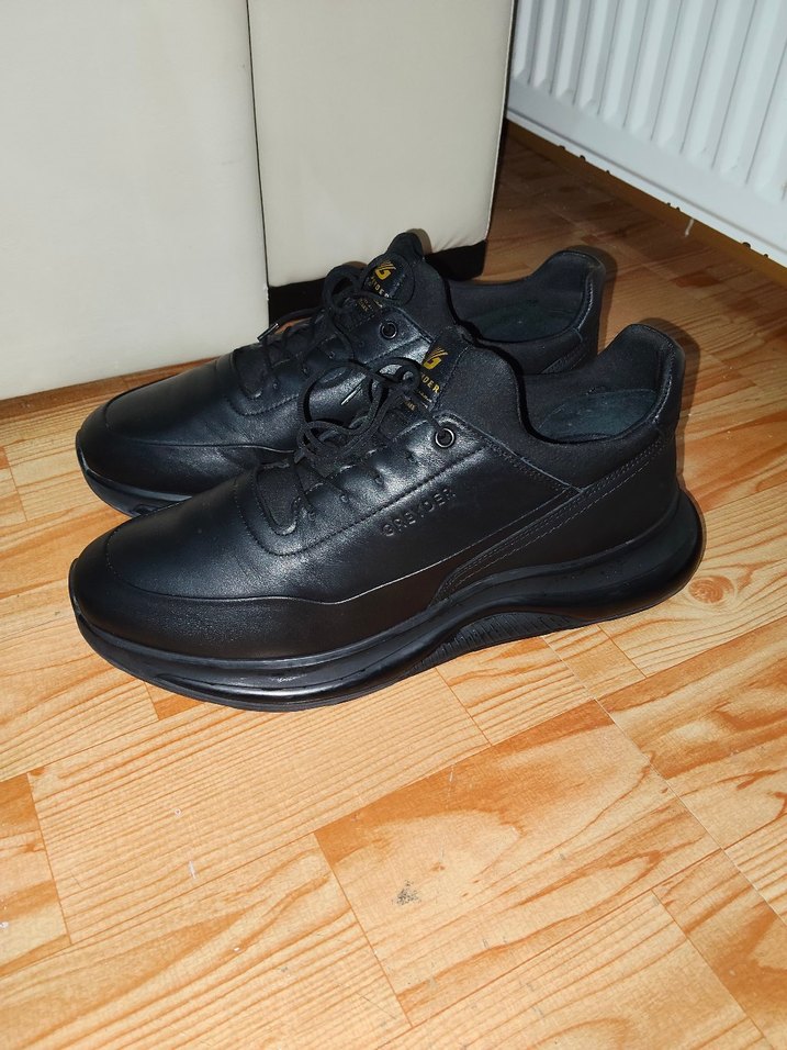 Siyah bağcıklı erkek günlük spor ayakkabısı, bir gün giyildi yeni yağlı deri .köpük taban rahat temiz sağlam su geçirmez hakikî Deri siyah