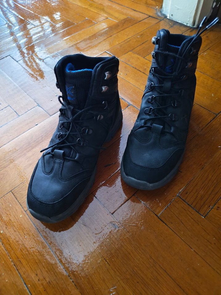 Siyah, kauçuk malzemeden yapılmış, bağcıklı erkek botları. Gotik tarzda, outdoor ve şık günlük kullanıma uygun. Athleisure tarzı için ideal.