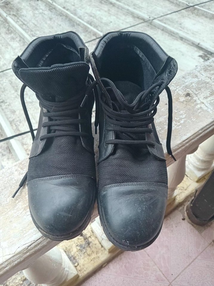 Siyah kauçuk malzemeden yapılmış, bağcıklı erkek botu. Sokak stiline uygun, günlük kullanıma elverişli ve desen içermeyen model.