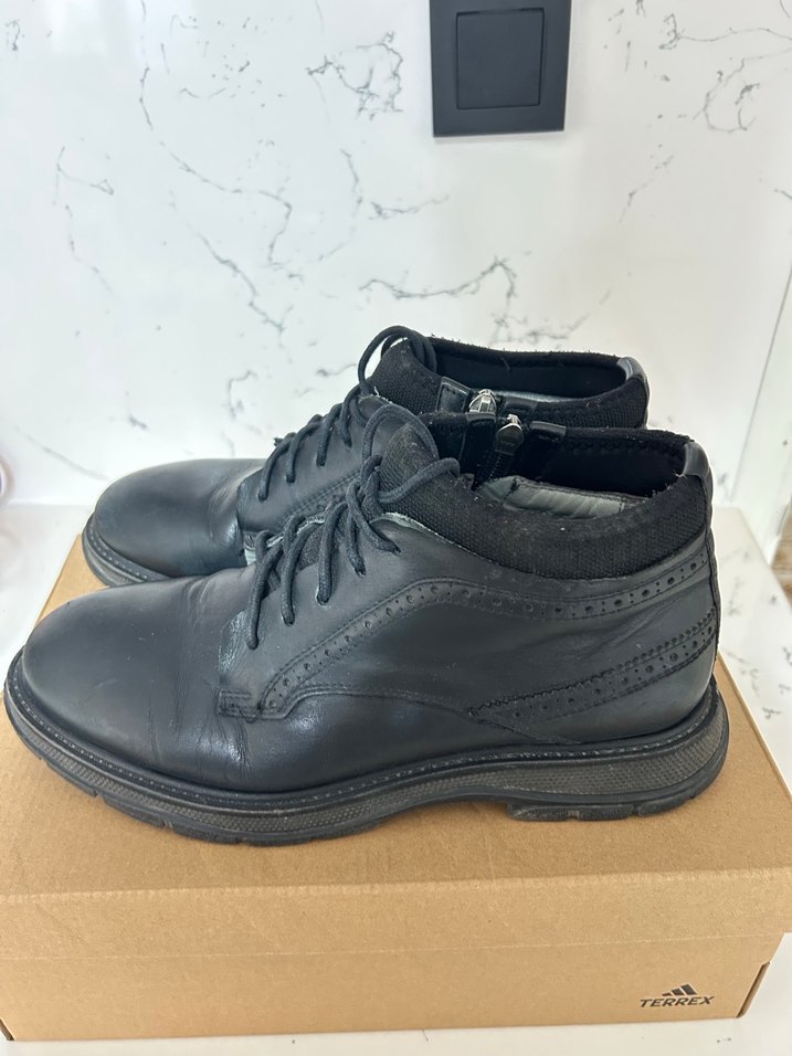 Siyah bağcıklı, dayanıklı kauçuk malzemeden yapılmış erkek ofis botları. Desensiz ve trend casual iş tarzına uygundur.