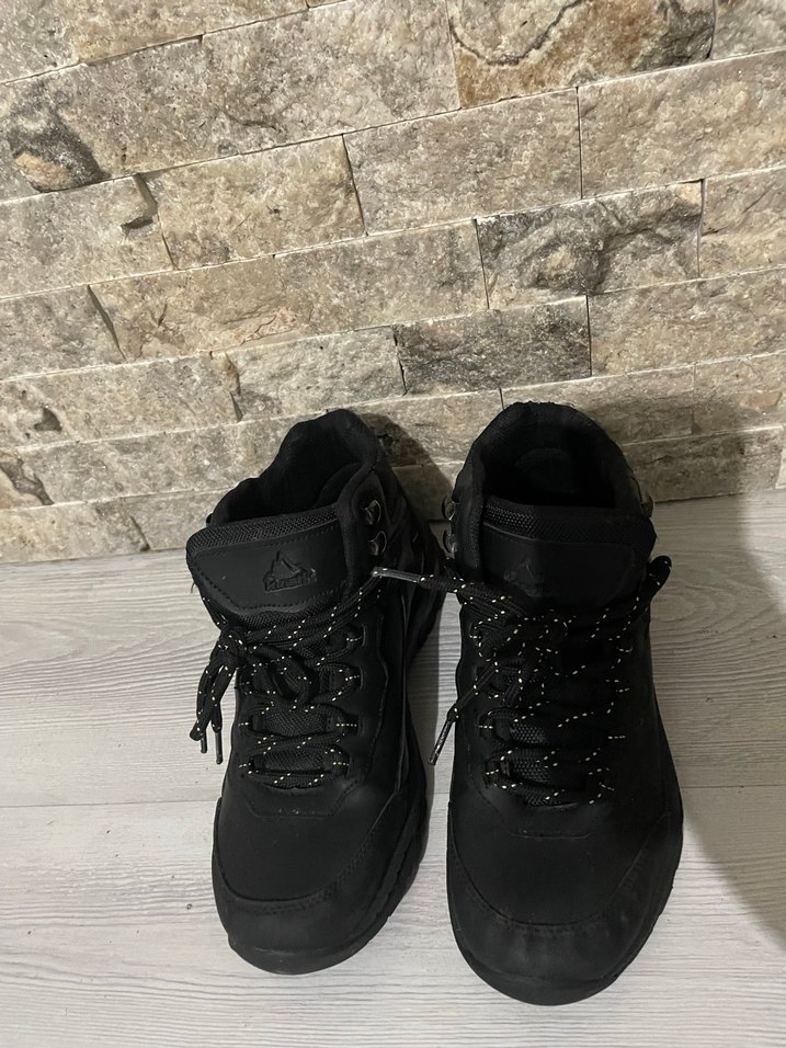 Siyah bağcıklı erkek outdoor botlar, kauçuk tabanlıdır ve günlük sokak stili için uygundur.