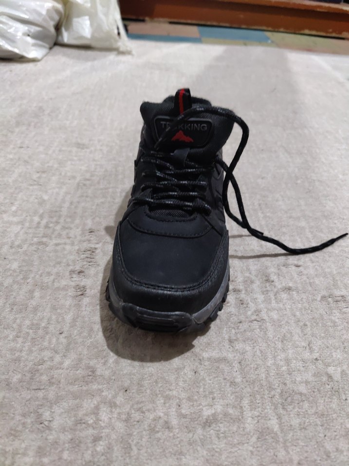 Siyah bağcıklı erkek outdoor ayakkabısı, kauçuk malzemeden üretilmiş. Spor ve günlük rahat sokak stili için uygun. 38 numara geçen yaz alındı giymedim hiç evde durduğu için çok az pırçıklanma var için çok az.