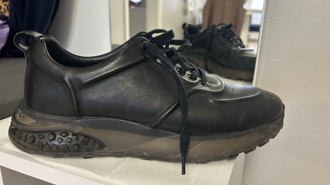 Siyah, bağcıklı erkek sneakers, kauçuk tabanlıdır ve günlük kullanım ile sokak modası için uygundur. Desensiz, şık ve avangart bir görünüme sahiptir. İnci marka 43 numara ihtiyaç fazlası olduğu için satıyoruz sadece 2 kez giyildi