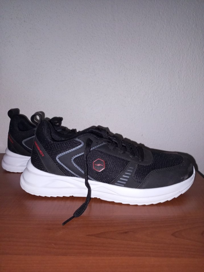 Bağcıklı, siyah renkli, kauçuk tabanlı erkek spor ayakkabısı. Düz tasarımıyla athleisure ve sokak stiline uygundur. bir iki kez giyildi hiçbir sorun defo yıpranma yok 40 numara