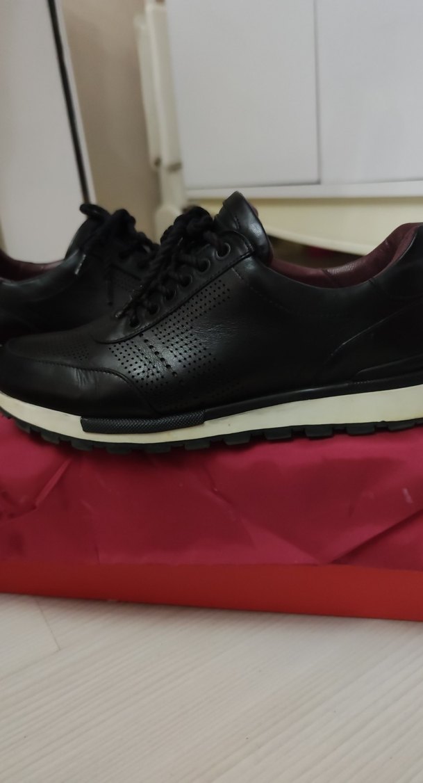 Siyah bağcıklı erkek spor ayakkabısı, kauçuk tabanlıdır. Trendy sokak stili ve athleisure için uygundur. Rahat ve günlük spor için idealdir.içi dışı gerçek deridir.İçine keçe koymanız gerekiyor kendi tabanı bulamadîm eşim ortepedik taban koyup kullanmıştı.