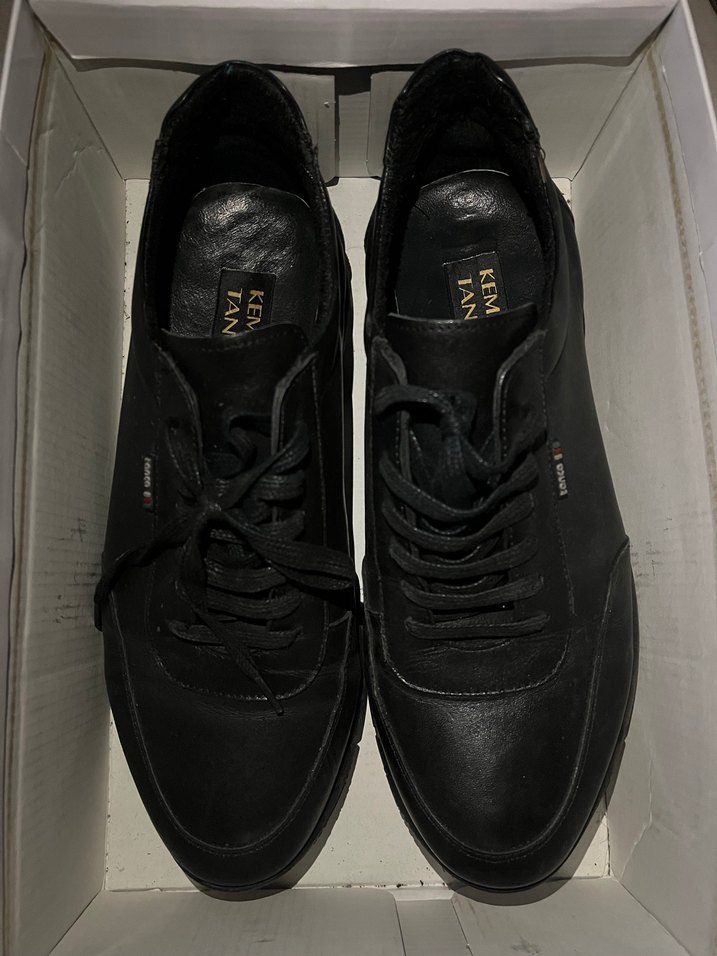 Siyah, bağcıklı erkek spor ayakkabısı, kauçuk malzemeden üretilmiş, günlük kullanım için uygun sade desensiz tasarım.