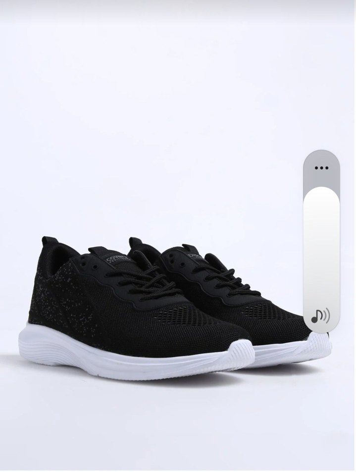 Siyah bağcıklı Erkek spor ayakkabısı, ince topuklu ve kauçuk tabanlıdır. Spor ve sokak stili için uygundur.