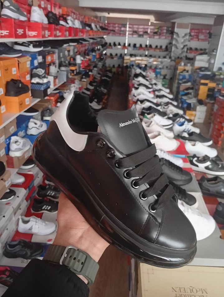 Siyah bağcıklı erkek spor ayakkabısı, kauçuk malzemeden üretilmiş, spor ve günlük kullanıma uygun.
