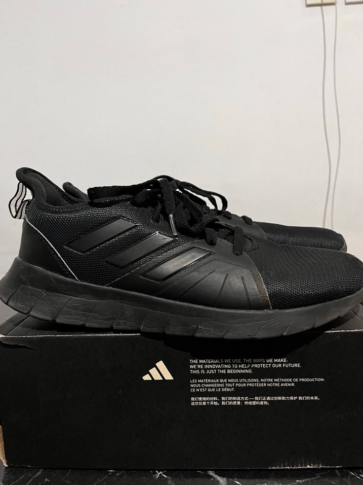 Siyah bağcıklı erkek spor ayakkabısı, kauçuk tabanlıdır. Streetwear ve athleisure tarzına uygun, rahat ve trend bir modeldir. 46 no 30 cm 46.5 yazıyor sanırım tertemiz durumda