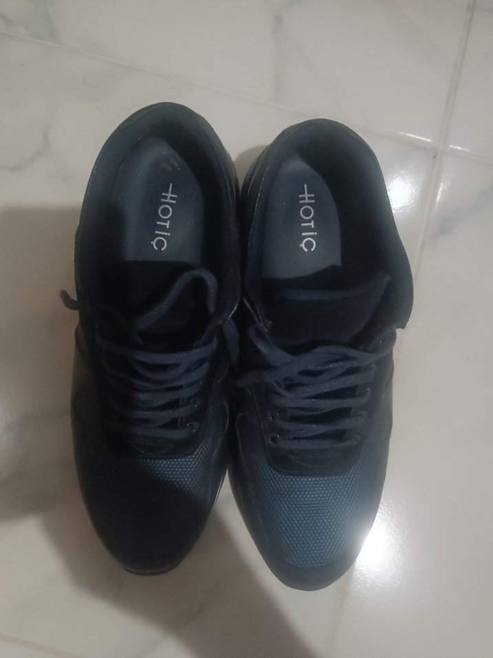 HOTIC markalı siyah bağcıklı erkek spor ayakkabısı, kauçuk tabanlı ve desensiz sade tasarımlı, spor ve günlük kullanıma uygun. ♂️