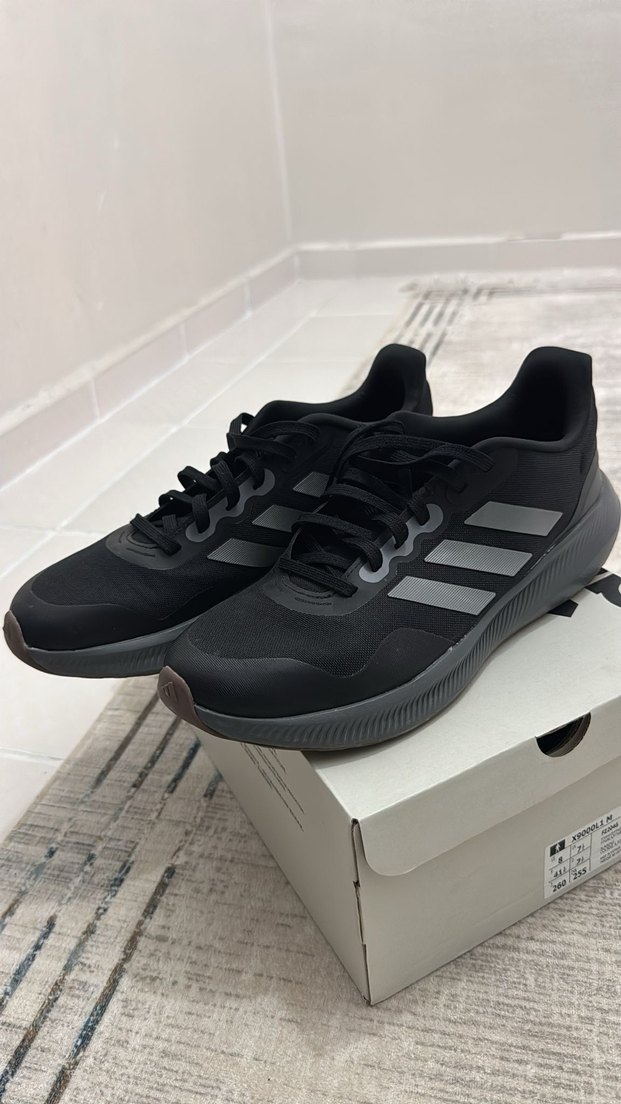 Siyah bağcıklı erkek spor ayakkabısı, baskılı detaylara ve kauçuk tabana sahip, trend spor sokak stili için uygundur. 1 kez giyinildi sadece hiç bir sorunu yok