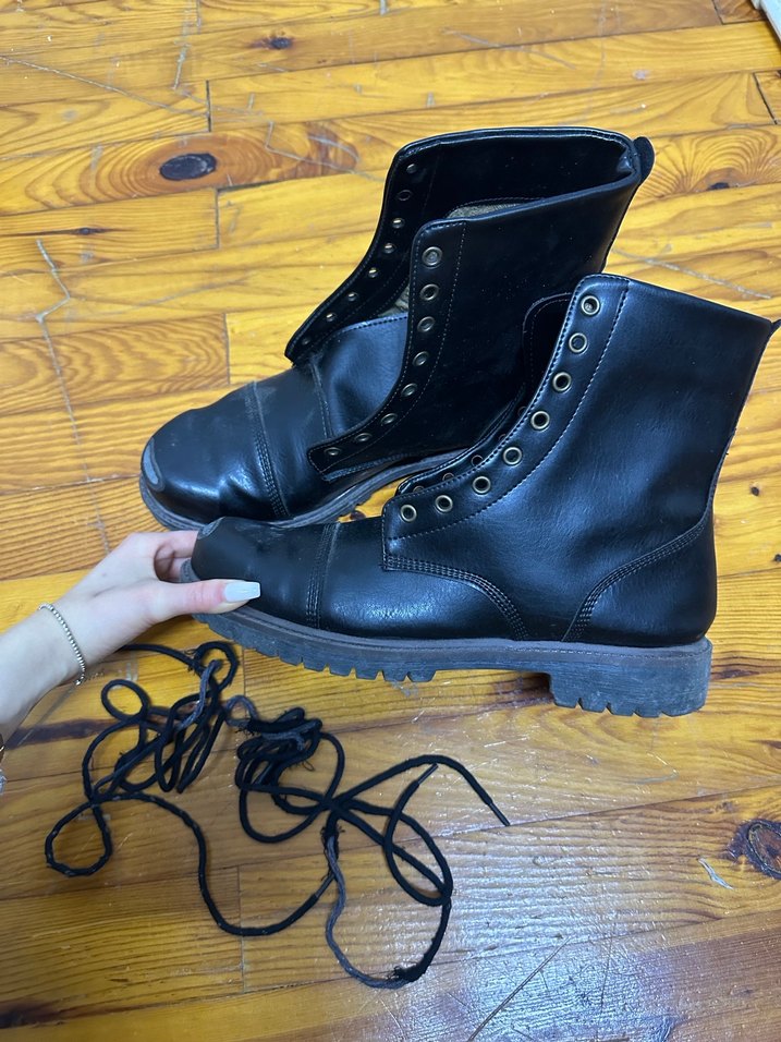 Siyah Bağcıklı Gerçek Deri Bot Erkek 44 Numara