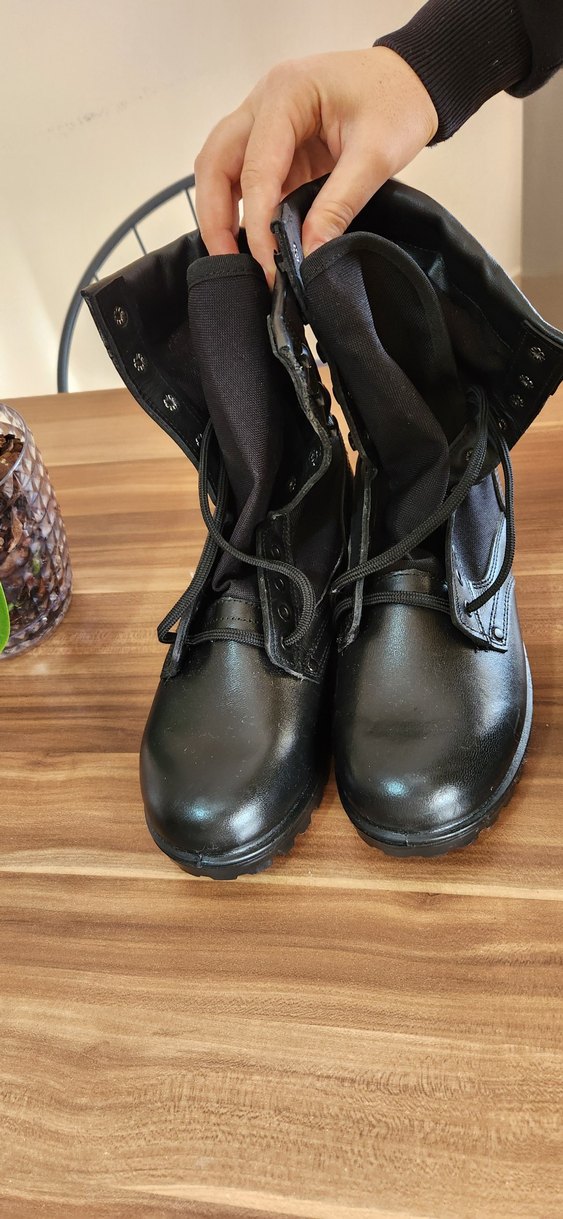Siyah kauçuk malzemeden yapılmış, bağcıklı ve gotik tarzda erkek botları. Günlük kullanıma uygun, desensiz şık tasarım.