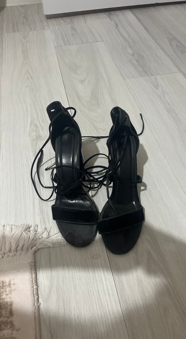 Siyah bağcıklı gotik ince topuklu kadın ayakkabıları, cesur bir görünüm için kauçuk malzemeden yapılmıştır. Romantik gece için uygundur.