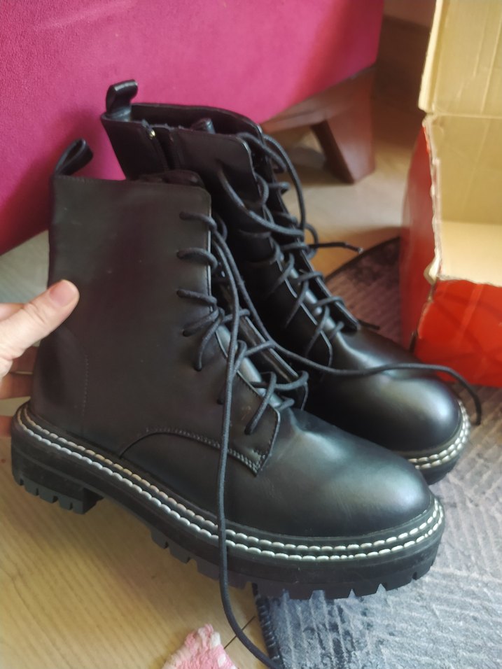 Siyah bağcıklı, stiletto topuklu, kauçuk malzemeden yapılmış gotik kadın botları. Günlük kullanıma uygun, desen içermeyen rahat model.