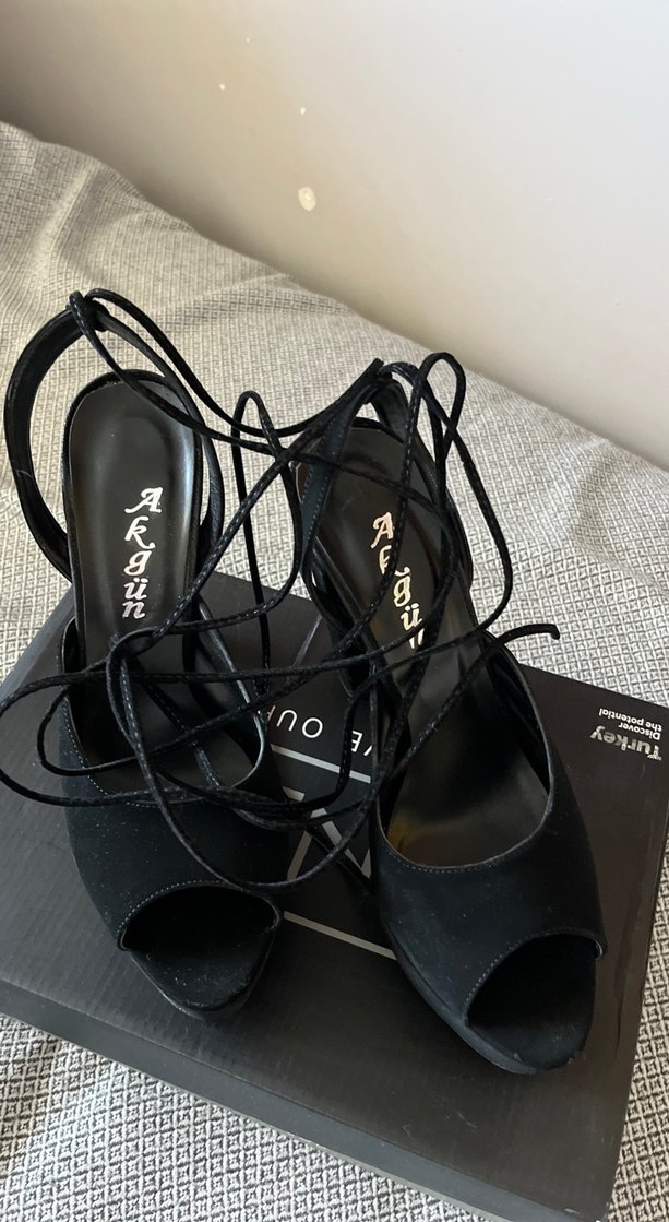 Siyah Bağcıklı Gotik Stiletto Topuklu Ayakkabı