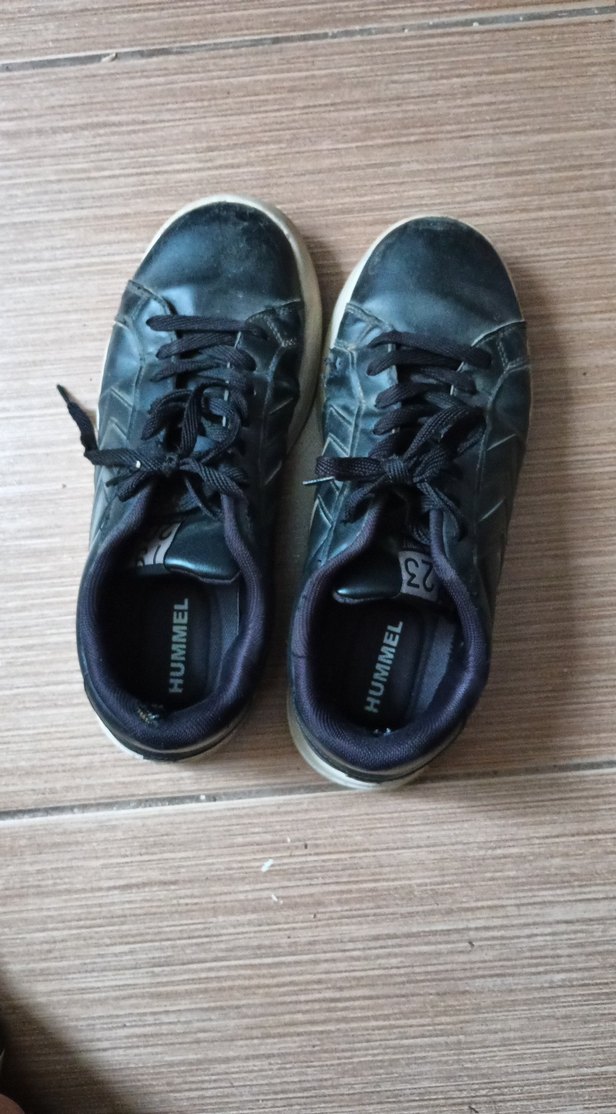 Siyah bağcıklı Hummel erkek spor ayakkabısı, kauçuk tabanlı ve desensiz sade tasarıma sahip. Spor ve günlük kombinler için uygundur.