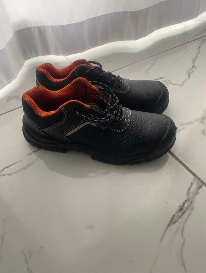 Siyah renkli, bağcıklı erkek outdoor ayakkabılar. Kauçuk tabanlı, iş güvenlikli ayakkabı yurtdışından geldi sıfır kullanılmadı