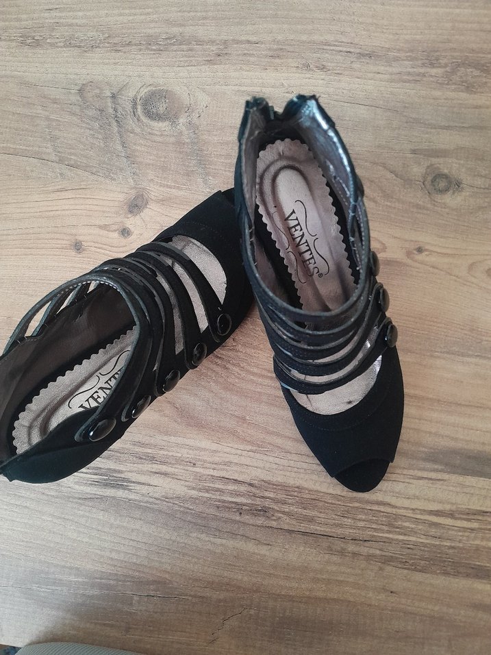 Siyah bağcıklı, kauçuk malzemeden yapılmış kadın dolgu topuk ayakkabılar. Günlük kullanıma uygun, trend goth tarzında.