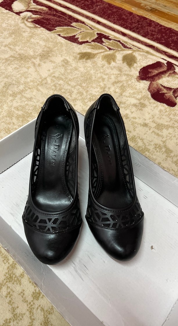 Siyah dolgu topuklu stilettolar, bağcıklı tasarımı ve lastik malzemesiyle gotik tarzda klasik şıklık sunar, ofis için uygundur.