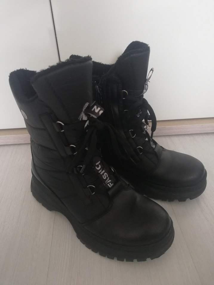Siyah kauçuk goth botlar, dolgu topuklu ve tokalı detaylara sahip, içi sıcak astarlı. Günlük sokak stili ve rock punk havası için uygun. marka temsili