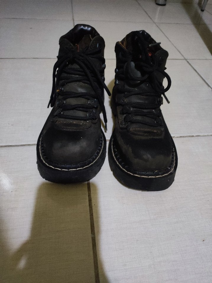 Haki kauçuk botlar, bağcıklı detaylara sahip. Grunge punk ve gotik tarzını yansıtan, günlük kullanıma uygun koyu renkte ve desensiz.