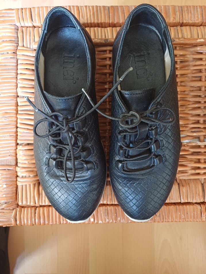Siyah renkte, blok topuklu ve bağcıklı tasarıma sahip kadın sneakers. Minimalist goth tarzıyla günlük kullanım için uygun, deri malzemeden yapılmıştır. 1-2 kere kullanıldı. #kadınsporayakkabı #kadınsneakers #kadıngünlükayakkabı