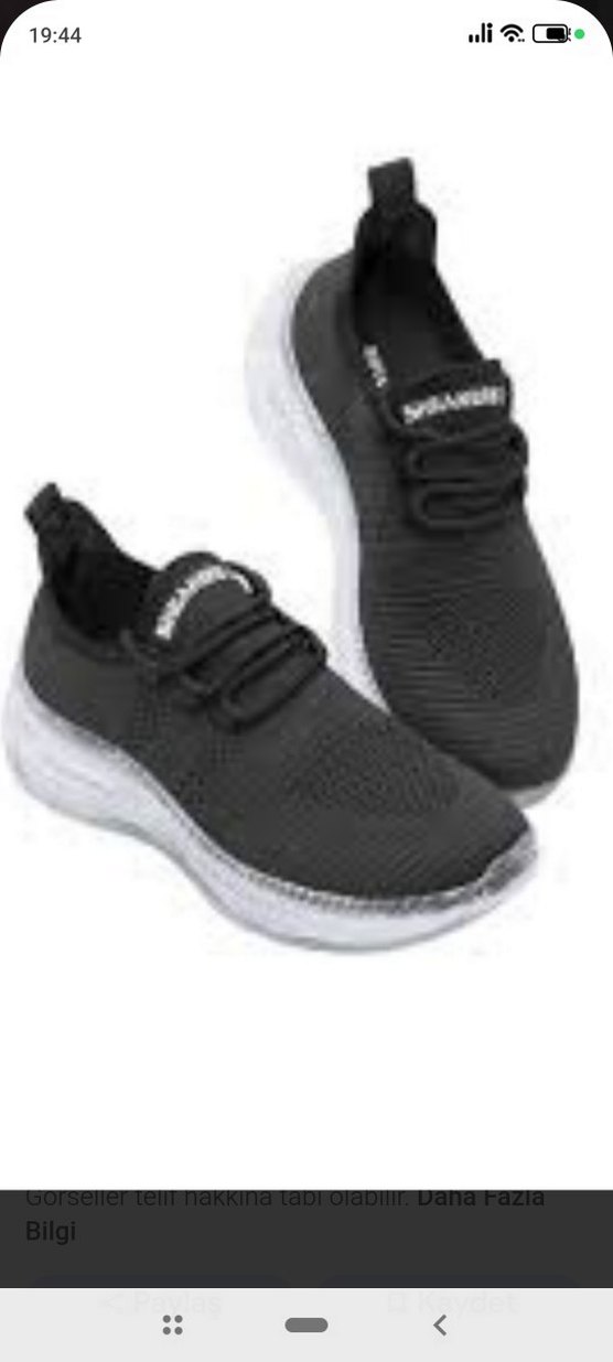 Siyah bağcıklı, düz tabanlı kadın spor ayakkabısı. Kauçuk malzemeden üretilmiş, gri canlı detaylı ve desensiz tasarıma sahip. 38 numara fakat kalıbı kucuk 37 uyumlu şeffaf olan yerde içten sararma mevcut hıc kullanılmadı