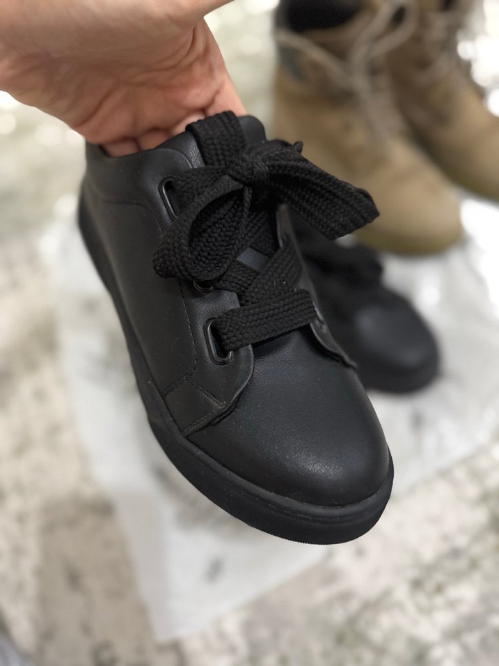 Siyah Bağcıklı Kadın Spor Ayakkabı