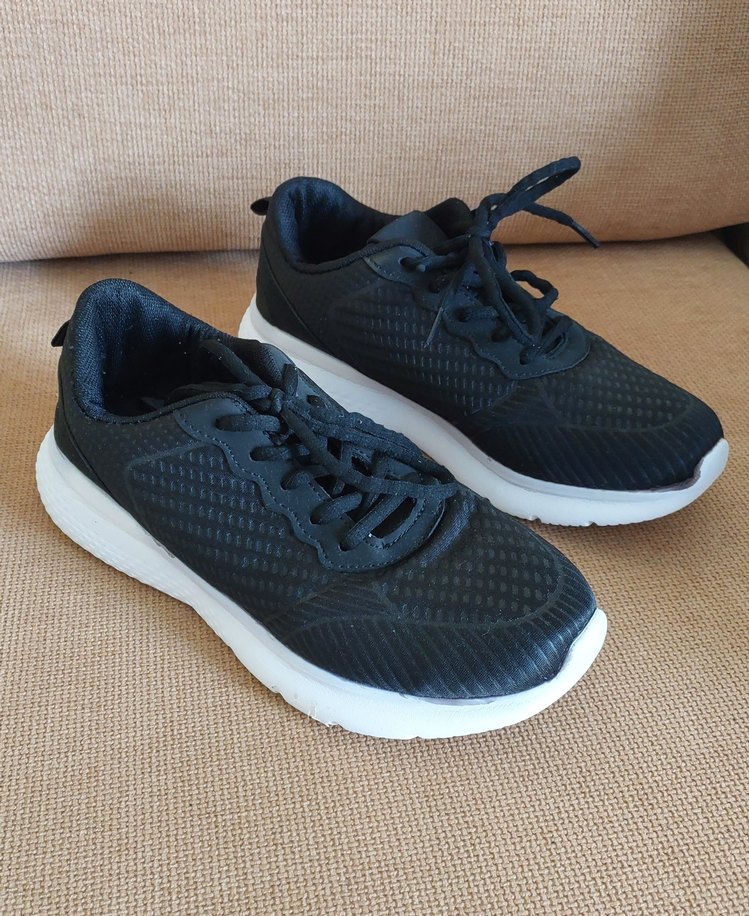 Siyah bağcıklı kadın spor ayakkabısı, stiletto tarzı taban ve kauçuk malzeme ile sportif ve sokak stiline uygun şık tasarım. 36 numara tam kalıp. sadece bir kaç defa giyildi yeniden farksız tertemiz. hiç bir kusur yok