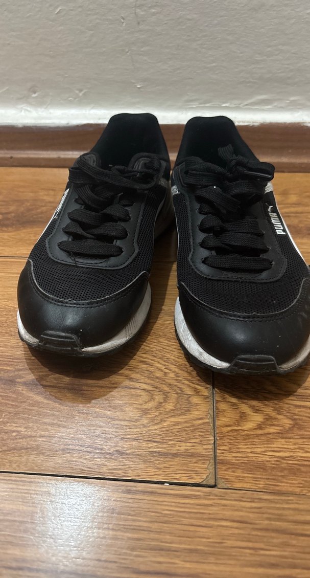 Siyah bağcıklı kadın spor ayakkabısı, kauçuk tabanlı, sportif ve sokak tarzı için uygun. Rahat ve kullanışlıdır.