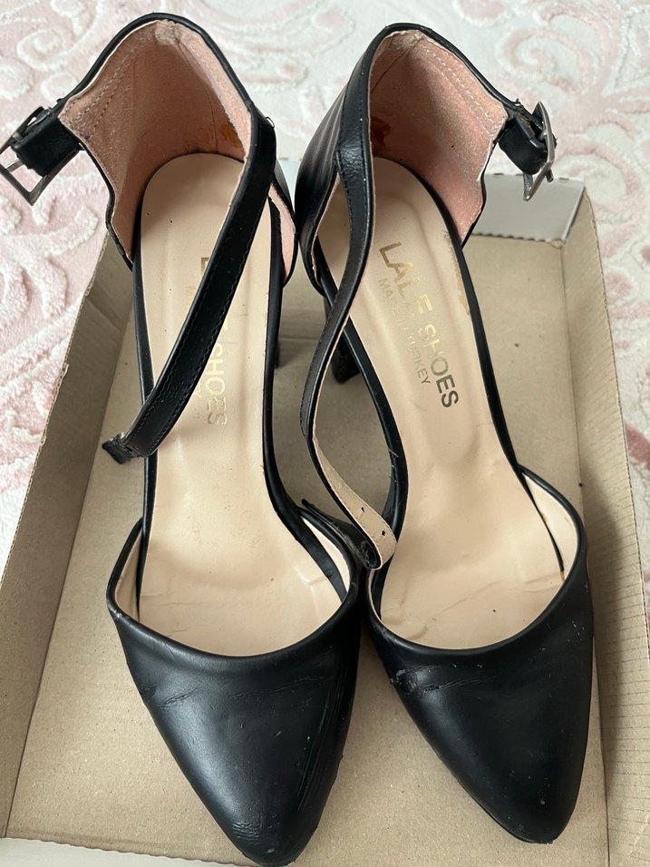 Siyah Bağcıklı Kadın Topuklu Ofis Ayakkabısı