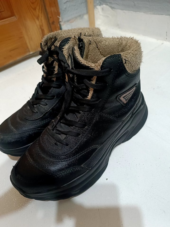Yumuşak iç astarlı, bağcıklı siyah kız spor botları. Kalın tabanlı ve desensiz, sokak stili için uygun. 38 numara ama kalıbı bı tık dar olduğu için 37 numarayı işaretledim geçen yıl aralık aylarında almıştım 2 ay kadar günaşırı şekilde kullandı, bu yıl malesef olmadığı için kullanmıyoruz. en son fotodaki terlikler de yanında gönderilecektir.