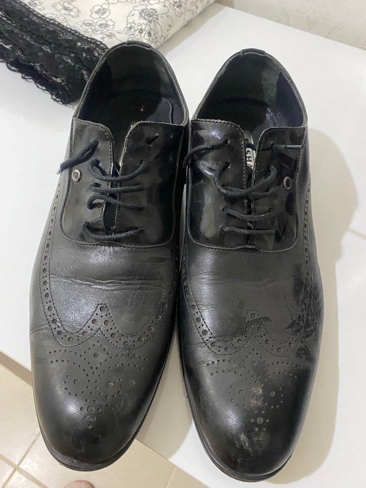 Siyah, bağcıklı, kauçuk malzemeden yapılmış klasik erkek ayakkabısı, ofis kullanımı için uygun gotik tarzda.